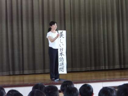 今日から美しい日本語週間です。朝会では、校長先生から「言葉の力」について講話がありました。子どもたちの姿勢のよさを、週番の先生から褒められました。退場の仕方も上手でした。