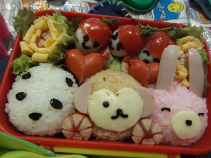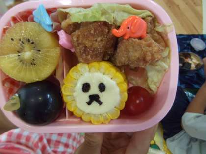楽しみにしていた全校遠足が延期になってしまったので、せめてみんなでお弁当を食べようということに・・・たてわり班ごとに集まって食べました。いつもとは違う仲間や先生たちと食べるお弁当。とても楽しそうでした!!来週は行けるといいなあ。今年もありましたキャラ弁!!