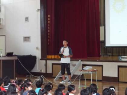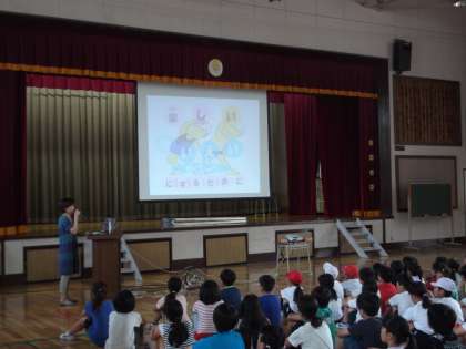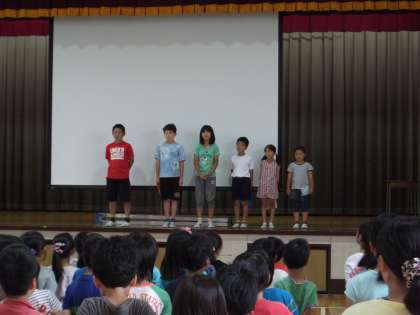 梅雨に入ったばかりですが、来週には水泳の学習が始まります。そこで、今日はプール開き集会がありました。各学年の代表の子が、それぞれの目標を発表した後、安全にプールに入れらように、いろいろな先生方からお話がありました。