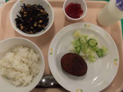 献立 ごはん ゼリーフライ ひとしお野菜 ひじきの煮物 あじさいゼリー 牛乳