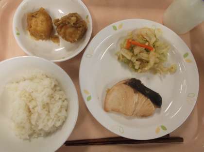献立 ご飯 かんぱちの照り焼き やさいの酢醤油 せいだのたまじ 牛乳