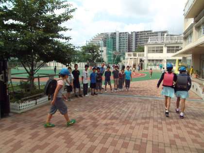 泉の学び舎で行われているあいさつ運動。6年生が張り切って登校してくる子どもたちにあいさつをしていました。あいさつをされてもしても気持ちがよいですよね!