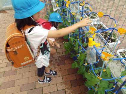 入学して早2ヶ月半。元気な元気な1年生です。登校するや否やアサガオに水をやったり、わくわくクラス遊びを楽しんだりと、学校生活を楽しんでいます。