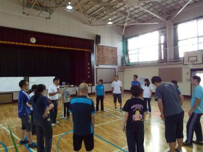 ビッチリ2時間、体を動かしながらの研修会を行いました。challenge by choice!!自分の目標を自分で決める。決めたらやる!一人では乗り越えられないけど、仲間がいればできる。集団・グループからチームへ!!チーム中里、ガッチリスクラムを組んでいます。