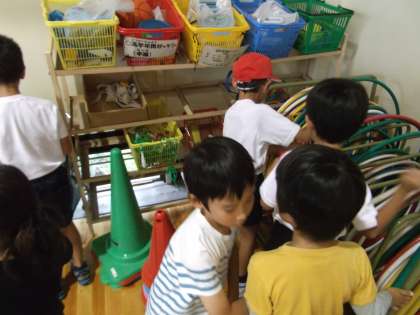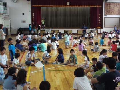 たてわり班に分かれて、くじを探しました。最後まで見つけられないものもあり、大いに盛り上がりました。