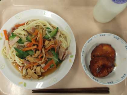 献立 冷やし中華 じゃ芋餅 牛乳