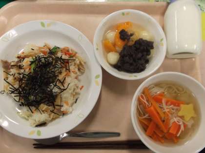 献立 五目ずし 七夕汁 白玉ぜんざい 牛乳
