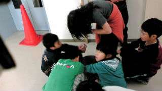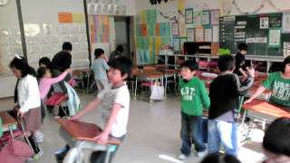ときどき ふざけるこも いるけど みんなでいっしょに きれいにしたら