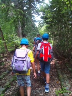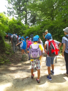 六年日光林間学園が始まりました。予定よりも早く到着しました。バスを降りて、子供たちの第一声は「涼しい〜」でした。杉並木を歩きました。
