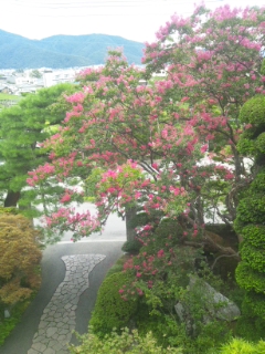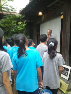 疎開でお世話になった「金宇館」でも、当時のお話をうかがいました。昭和19年8月の百日紅が満開の時から97名の疎開が始まったそうです。私たちが伺った時、百日紅が満開でした。