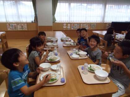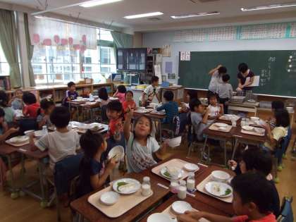 2学期始まって1週間が経ちました。学校生活のリズムも戻ったのではないでしょうか。美味しい給食をモリモリ食べました!2年生はランチルームで食べました。