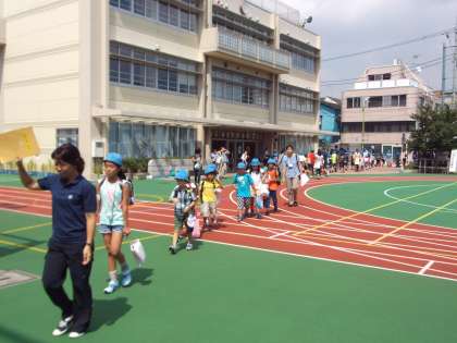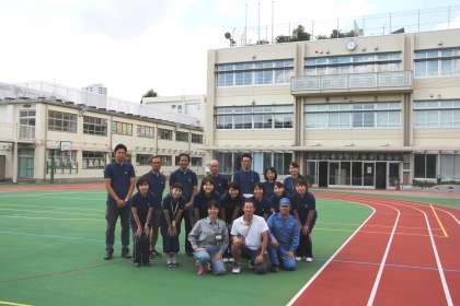 最後は、有事に備え集団下校をしました。中里の先生たちは、期せずして紺の中里ポロシャツ!思わずパシャリ!!白一点はご愛敬。ご協力いただき本当にありがとうございました。