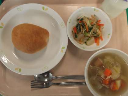献立 焼きカレーパン ポトフ こんにゃくサラダ 牛乳