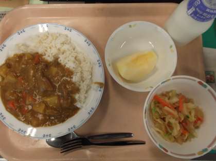 献立 カレーライス 寒天サラダ くだもの 牛乳