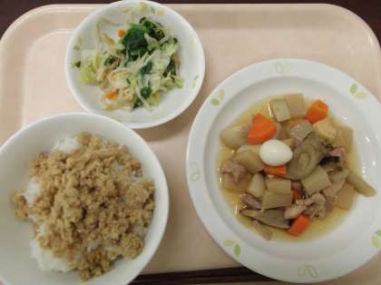 献立 ごはん おからそぼろ 筑前煮 味噌ドレサラダ 牛乳
