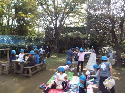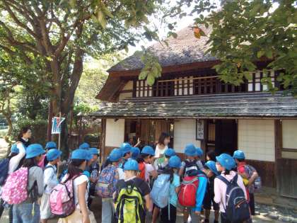お弁当は次太夫堀公園で食べました。のどかな空気が流れる中、鍛冶屋や江戸時代から続く民家などを見学しました。