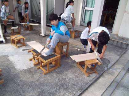 6年生は、のこぎりをつかって木工作をしていました。4年生は、ハードル走。一生懸命っていいな!