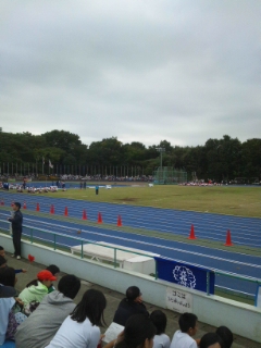 スポーツの秋 今日は世田谷区立総合運動場で連合運動会が行われ、六年生が参加をしています。自己の記録に挑戦しています。
