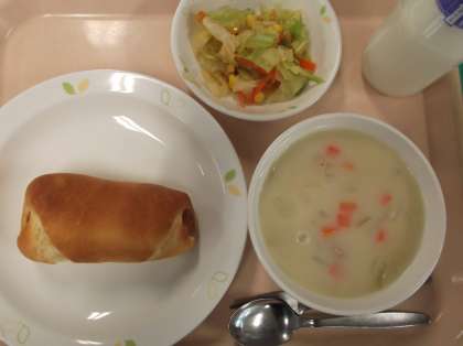 献立 ウインナーパン じゃがいものポタージュ コーンサラダ 牛乳