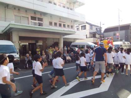 フレンズケアのみなさんが、応援してくれました。ありがたいことです。多くの方々に支えられ、無事に1時間かけた練り歩きが終了しました。子どもたちは、最後まで元気な掛け声でびっくり!!御協力ありがとうございました。