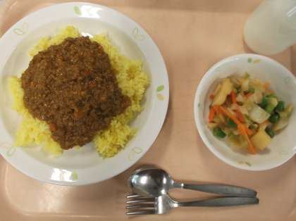 献立 キーマカレー じゃが芋のサラダ 牛乳