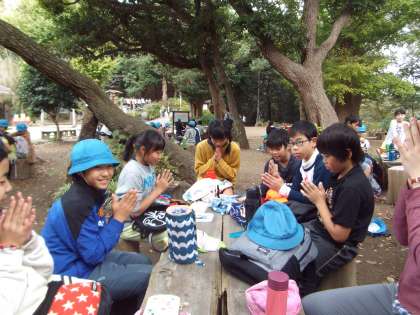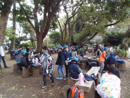 源氏山でお弁当を食べました。和気あいあいとした雰囲気の中・・・突如カラスが・・・