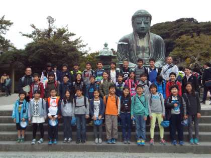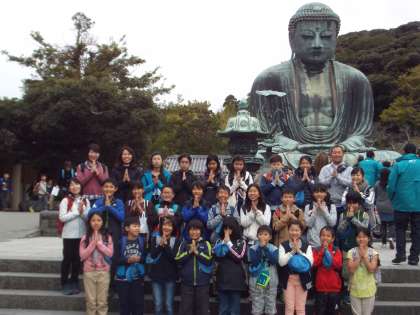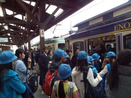 高徳院の大仏をバックにパシャリ!江ノ電にも乗りました。