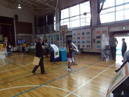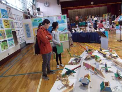 アートナビの様子です。5,6年生が、地域や保護者の方々、時には教職員にも作品の案内をしてくれました。縦割り鑑賞やアートナビ、みこし練り歩きなど、人とのかかわりがとても多い展覧会です。