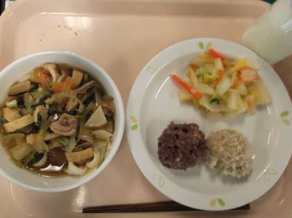 献立 里山うどん 真珠むし 白菜の中華サラダ 牛乳