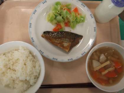 献立 ごはん 鯖の味噌煮 ひとしお野菜 のっぺい汁 牛乳