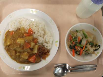 献立 カレーライス 福神漬け こんにゃくサラダ 牛乳