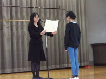 ユニセフ募金と表彰がありました。ユニセフ募金は24399円集まり目標額を達成しました!運営委員会のみんな、がんばりました。環境をテーマにした絵のメッセージが環境大臣賞を受賞しました。なんと2年連続!!こちらもがんばりました。
