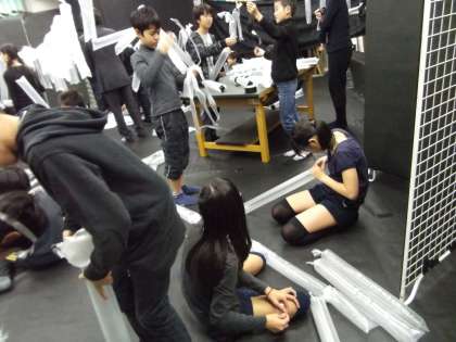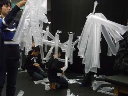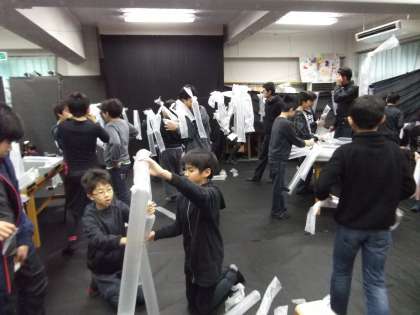 今日の6年生の図工の授業は黒い空間のなかで、黒い服を着た子たちが、様々な表現活動を行いました。