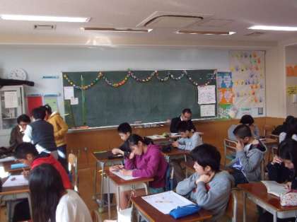 教室では、冬休みの復習テストや冬休みの話などが行われていました。