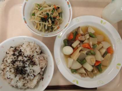 献立 小豆ごはん 筑前煮 もやしの煮びたし 牛乳