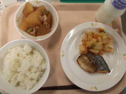 献立 ごはん 鰆の柚庵焼き 白菜のおかか和え 大根のべっこう煮 牛乳