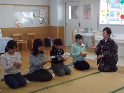 地域の方を講師にお迎えして、5年生が茶道に挑戦しました。落ち着いた時間が流れる中で、お茶とお菓子をいただき、子どもたちの表情もいつも以上に和らいでいました。ありがとうございました。