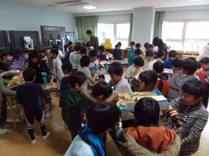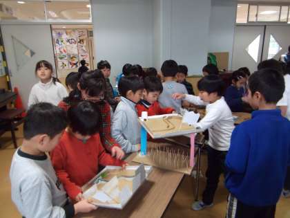 3年生が作った図工の作品で遊ぶ催し物がありました。昼休みの生活科室は大盛況でした。お昼の放送での宣伝が功を奏したようです。素敵な企画です。本田先生「いいね!」