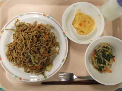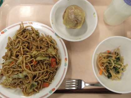 献立 ソース焼きそば 野菜のコチジャンだれ 選んでランチ(ベークドチーズポテトか塩味ケーキ)