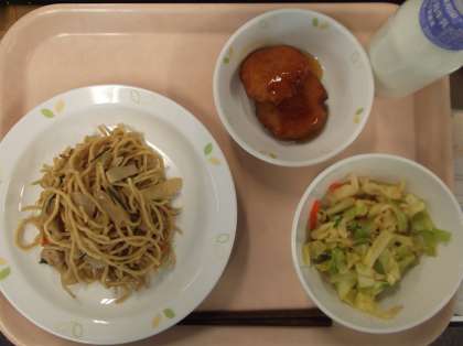 献立 塩焼きそば きゃべつのサラダ じゃが芋もち 牛乳