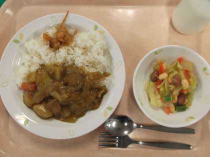 献立 カレーライス 福神漬け 豆のサラダ 牛乳