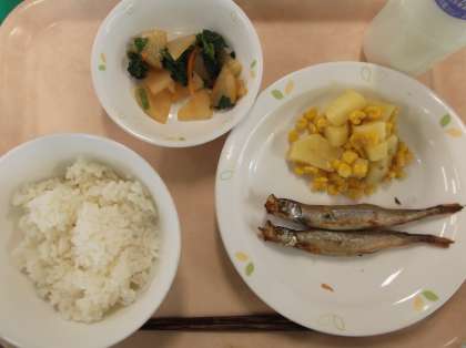 献立 ごはん 焼きししやも コーンポテト 野菜のコチジャンだれ 牛乳