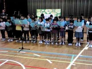 全校が声を合わせ、詩の情景や作者の思いに気持ちを馳せる「詩の朝会」が4年生をリーダーとして行われました。4年生が選んだ詩は谷川俊太郎の「ひみつのともだち」です。みんなにも「ひみつのともだち」いるかな?
