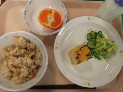 献立 こぎつねご飯 ひじきの卵焼き ひとしお野菜 くだもの(なつみ) 牛乳