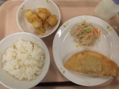 献立 ごはん ジャンボ餃子 かみかみ塩ナムル じゃが芋の甘辛煮 牛乳