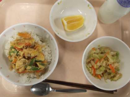 献立 親子丼 きゃべつのごまサラダ くだもの 牛乳