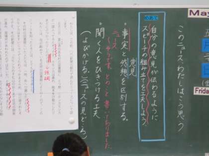 6年生の国語の授業の様子です。新聞などのニュースをもとにその内容を自分の知識や経験と結び付けて意見をまとめ、発表するための原稿をまとめました。皆、熱心に取り組んでいました。発表が楽しみです。