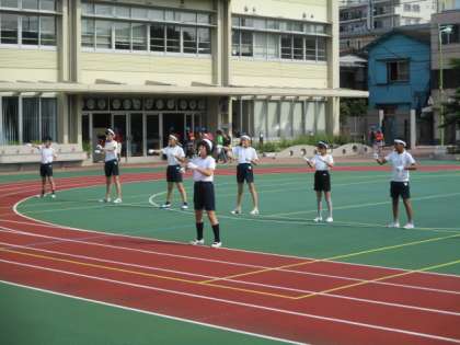 28日の運動会本番に向けて、赤組、白組の応援団の人たちが朝練に取り組んでいます。23日は校庭で練習しました。運動会を盛り上げる大切な応援団。よろしくお願いします。