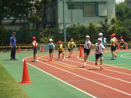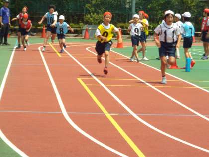 夏日の今日、給食準備の時間を利用してリレーの練習が行われました。暑い中、集中して真剣に取り組む子どもたち!すばらしい!!