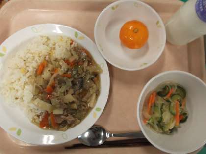 献立 あんかけチャーハン 春雨サラダ 果物 牛乳